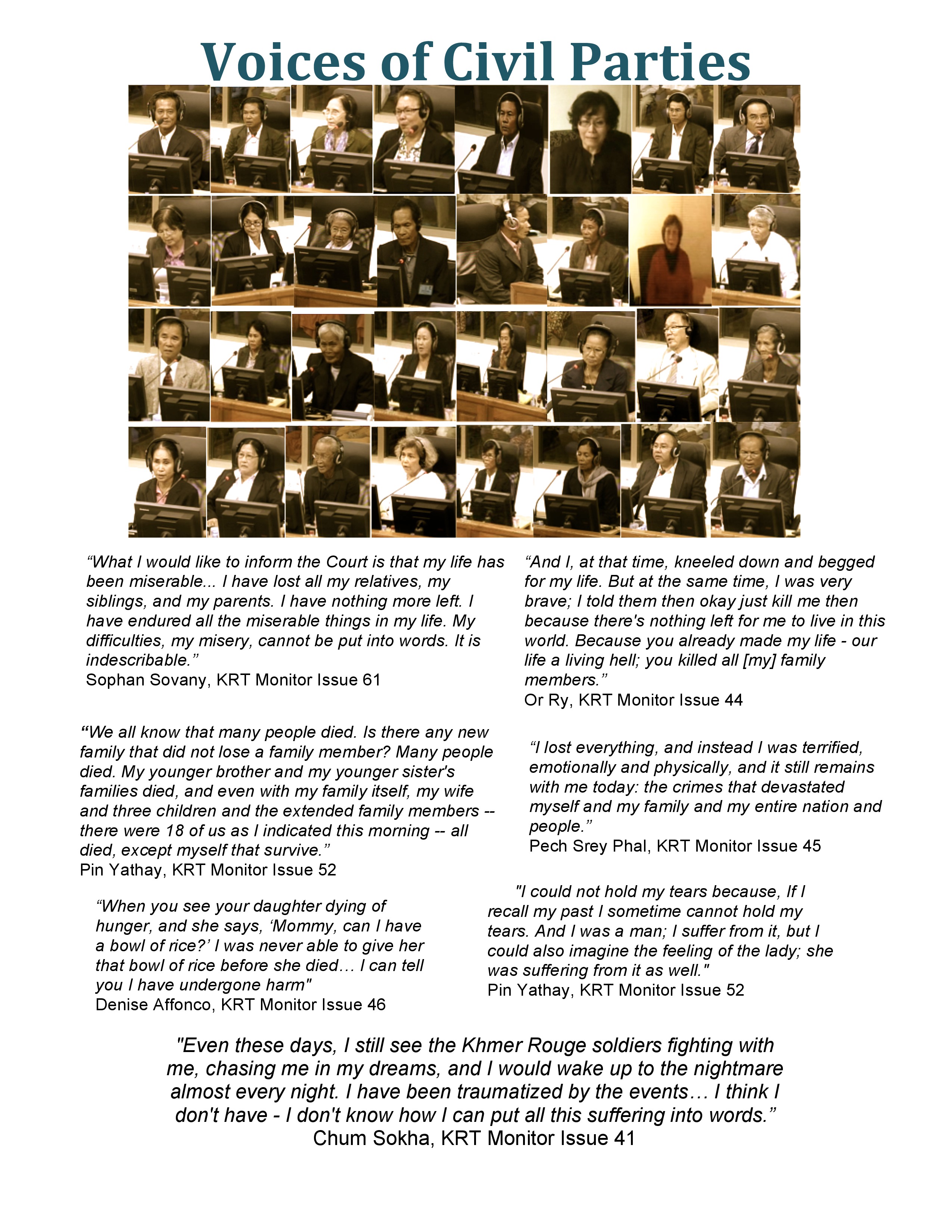 For AIJI’s coverage of Civil Parties’ Testimonies, please see the following issues: